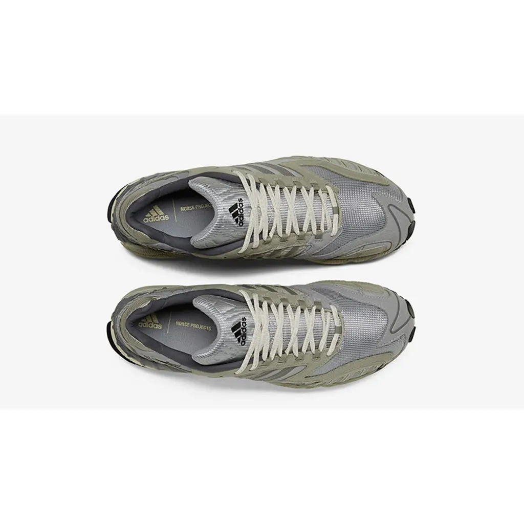 Paying homage to the city of Copenhagen, the design of the Norse Projects x adidas Torsion TRDC Grey conforms with their “created for life — good for all seasons” slogan. Featuring a predominantly grey colour scheme to represent the Danish capital’s foggy air, touches of neon yellow feature throughout to symbolise “a physical presence in a low visibility environment.”