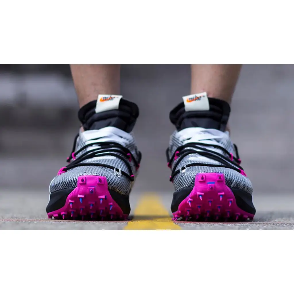 Building on the race ready Vapor Street silhouette, the Off-White x Nike Vapor Street Black Multi is painted in a black and pink colour scheme that’s a lot more understated when compared to the other colourways that are dropping alongside it. A mesh and suede construction provides the perfect balance between form and function, and this is wrapped by a transparent overlay for waterproofing properties.