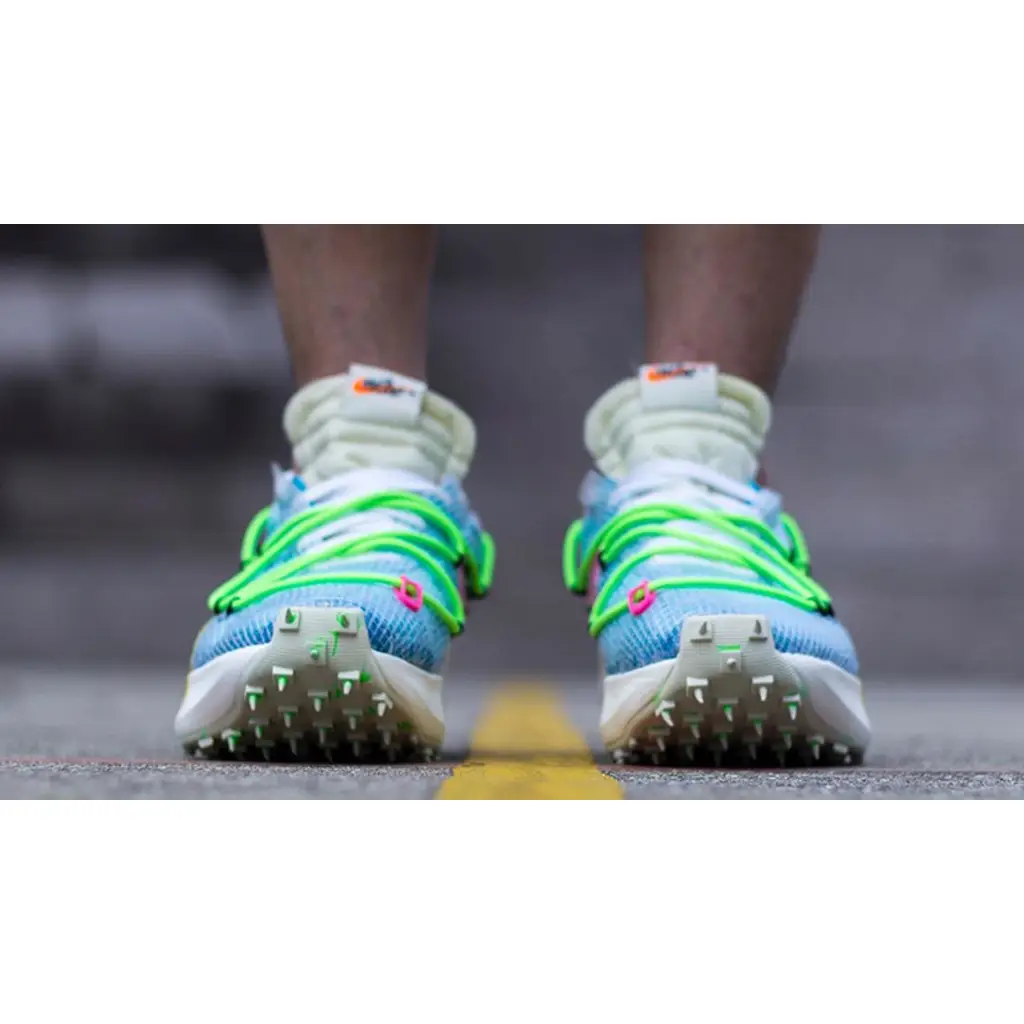 If you are searching for the perfect pair of kicks that will turn heads for many years to come, then look no further than the Off-White x Nike Vapor Street Teal Multi! A must cop shoe, we recommend that you go true to size for the perfect fit!