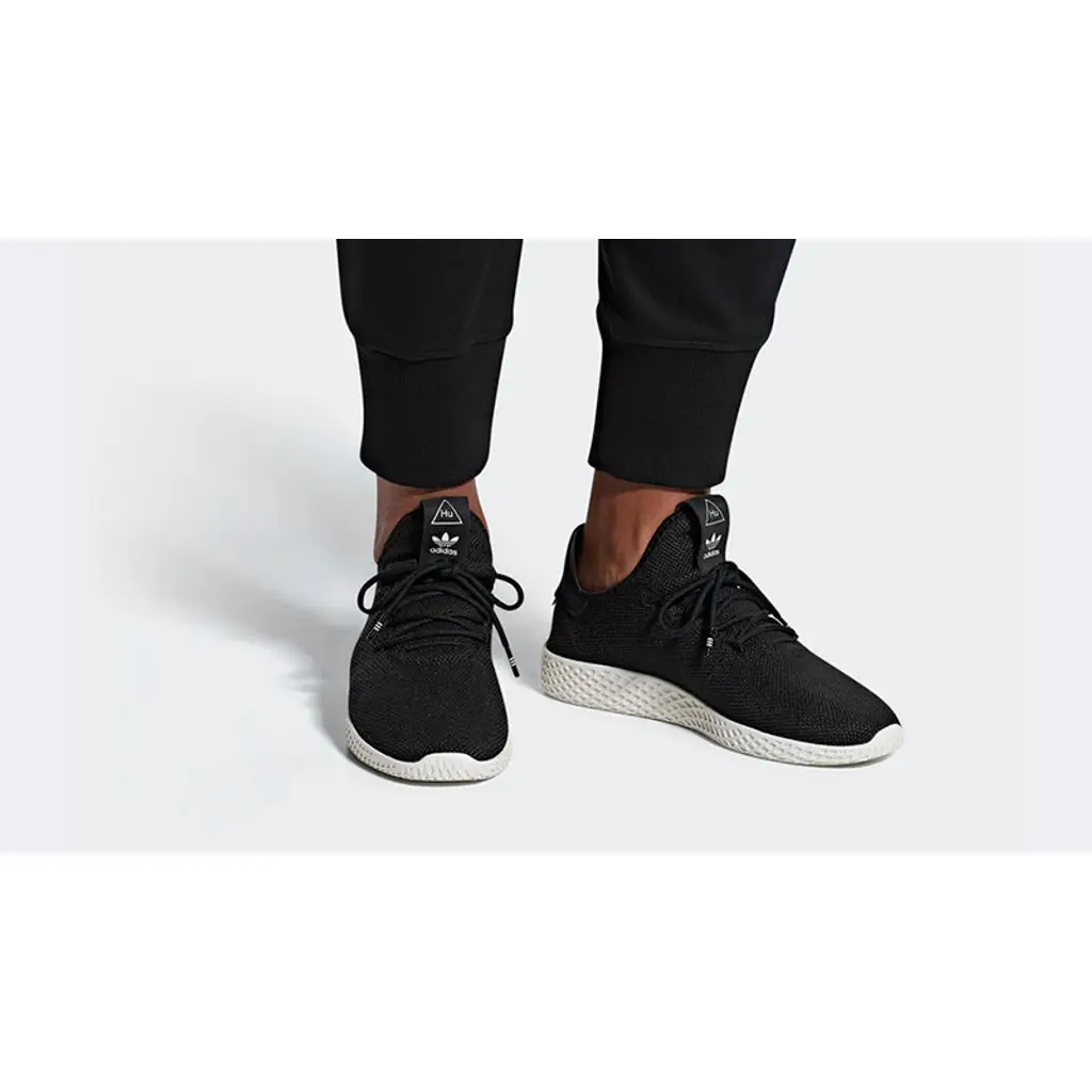 Possibly the most striking Pharrell x adidas Tennis Hu ever released, the Pharrell x adidas Tennis Hu Black White is a must cop shoe for your sneaker collection. Flawlessly fusing contemporary design with retro styling, this stealthy sneaker takes the tennis silhouette to a whole other level, and we are absolutely loving it.