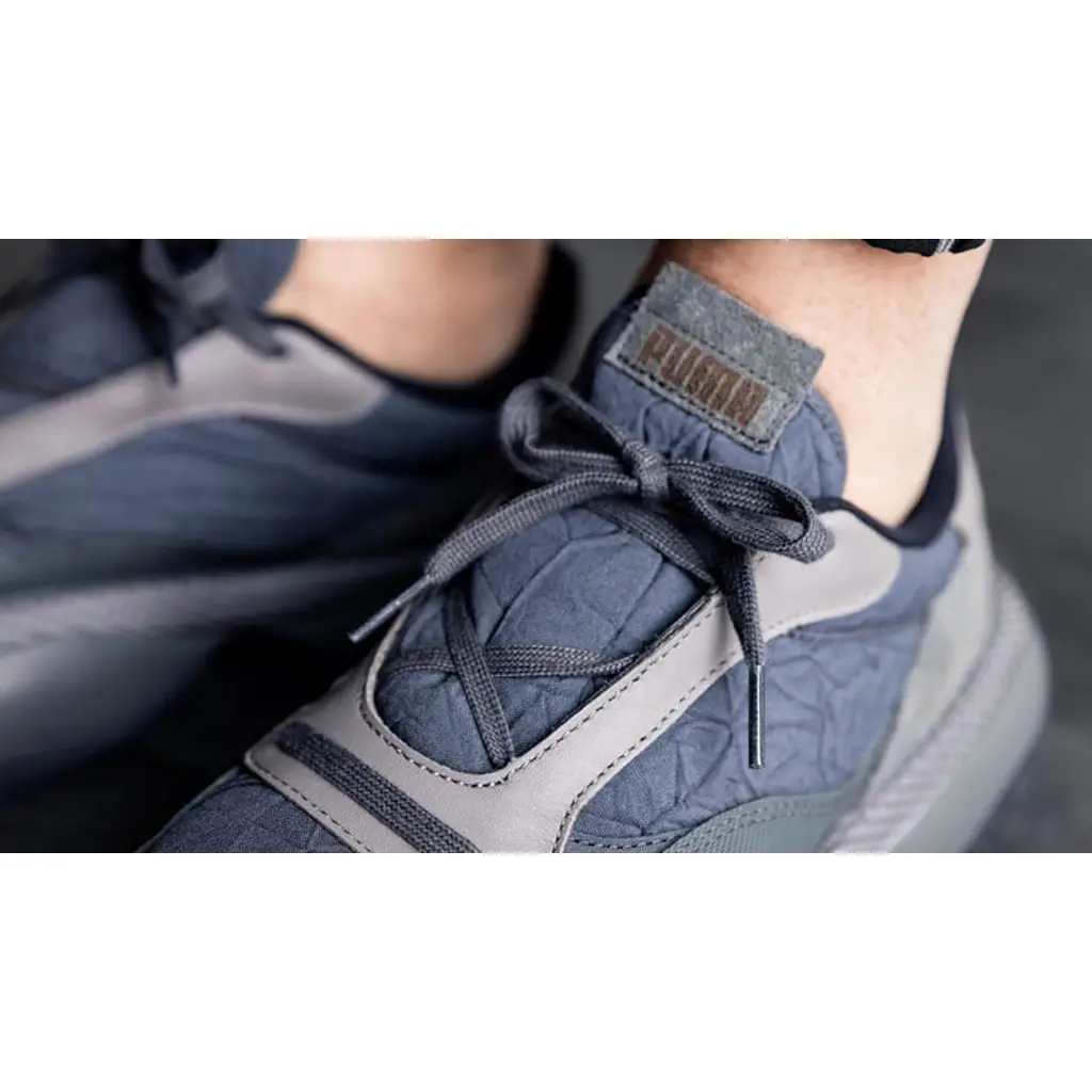 One of the first things you’ll notice about the Alteration PN-1 Steel Grey is the unique crinkled nylon upper that has everyone talking. This is overlaid by panels of ultra luxe leather and buttery smooth suede, giving the shoe a premium vibe that’s build to last. An extra chunky midsole sit down below with carbon fibre inspired accents, and a rubber outsole completes the look. In terms of branding, “PUMA” text hits the tongue while their feline mascot leaps into the heel region.