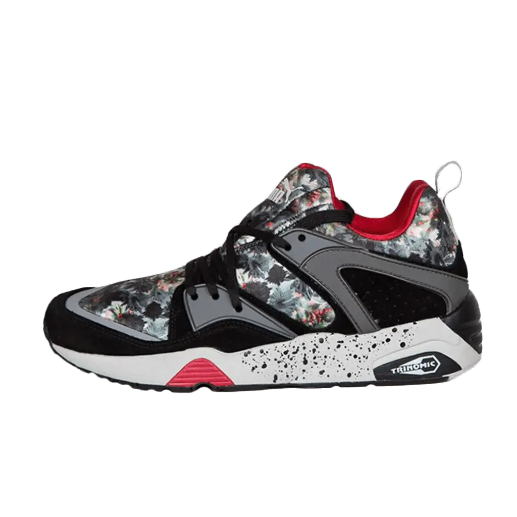 This Veil edition of the sneaker has a floral print underlay combining black, white and grey colours. It also includes reflective detailing. Adding to the floral printed trend, the pair also features a combo of floral-print neoprene with Black nubuck. It also offers a red lining with the classic speckled midsole.