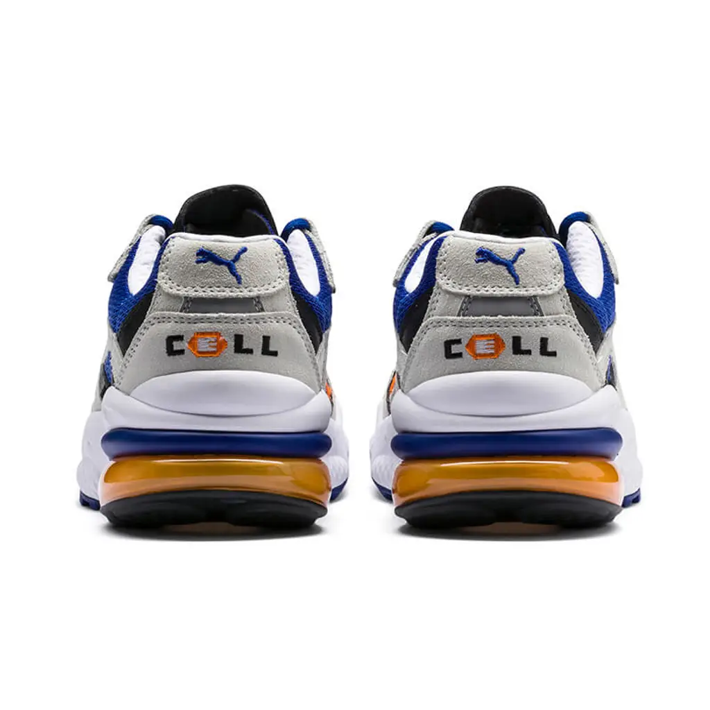 Reviving the retro silhouette after over twenty years, the Cell Venom Blue White fits seamlessly into today’s chunky dad shoe trend. Working on a clean off-white base, bold blue and orange accents feature throughout for a pop of contrast. A leather and suede upper gives the shoe a touch of luxury and a multi-layered midsole and bold, blown-up proportions will be sure to turn heads this season. PUMA logos hits the tongue and heel, while additional “CELL” branding arrives around the back.