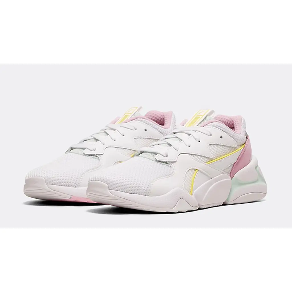 Showing off a chunky and textured midsole, the PUMA Nova 90s Bloc White Aqua Womens is instantly fitting in with 2019’s trends to a T. Adding a light comfort to every step, this silhouette boasts a IMEVA midsole to keep you happy all day.
