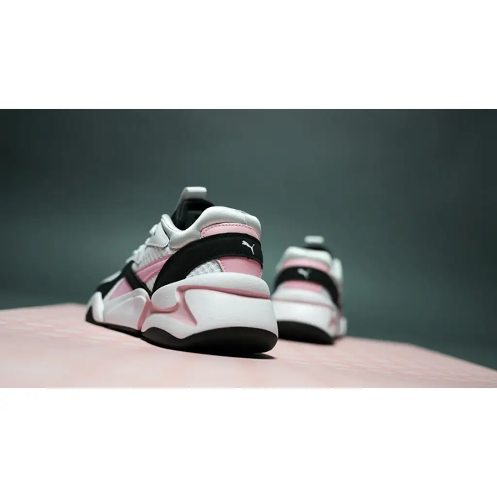 Arriving with a classic chunky midsole divided into three pieces with black and pink accents weaving into the design, the PUMA Nova 90s Bloc White Pink Women’s brings a trend-focussed look while achieving throwback vibes.