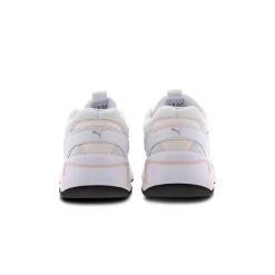 Tonal mesh takes over the majority of the upper for a breathable feel, while layers of white, grey, and pastel pink leather add a premium appearance throughout. PUMA branding complements the sneaker in a pretty in pink hue on the tongue and at the heel in grey for a signature look