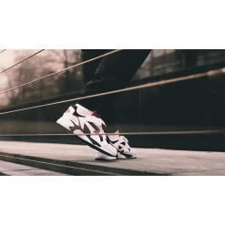 Panels of white leather feature across the sidewall with mesh and neoprene that ensures snug, lock-down comfort. Even the ‘Black Grape’ colourway stays true to the original. Vibrant hits of purple contrast nicely against the white and black colourway.