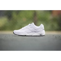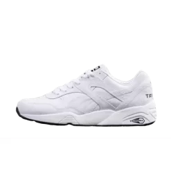 This pair of Puma R698 is crafted with rich leather upper and it features cracked TCU overlays. It also includes an accented nubuck. The pair includes branding on the tongue, heel and the back, and is finished with a white sole unit.