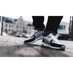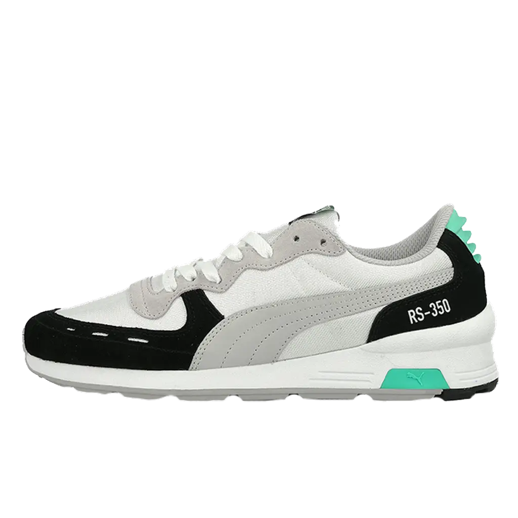 The PUMA RS-350 Re-invention stays entirely true to that original with a few hidden updates. Believe it or not, these are even more comfortable! Lightweight nylon extends across the upper with complimentary leather panels featuring for that signature PUMA stripe. A green coloured cap across the heel provides the only contrast to that grey and black upper.