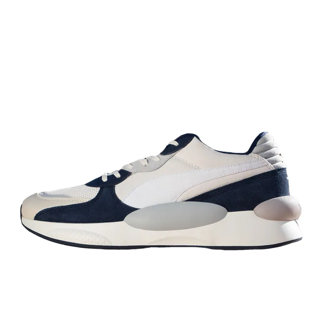 Painted in a monochromatic white and and black colour scheme, the upper of the RS-9.8 White Black is crafted from mesh, suede, and leather for the perfect balance of form and function.
