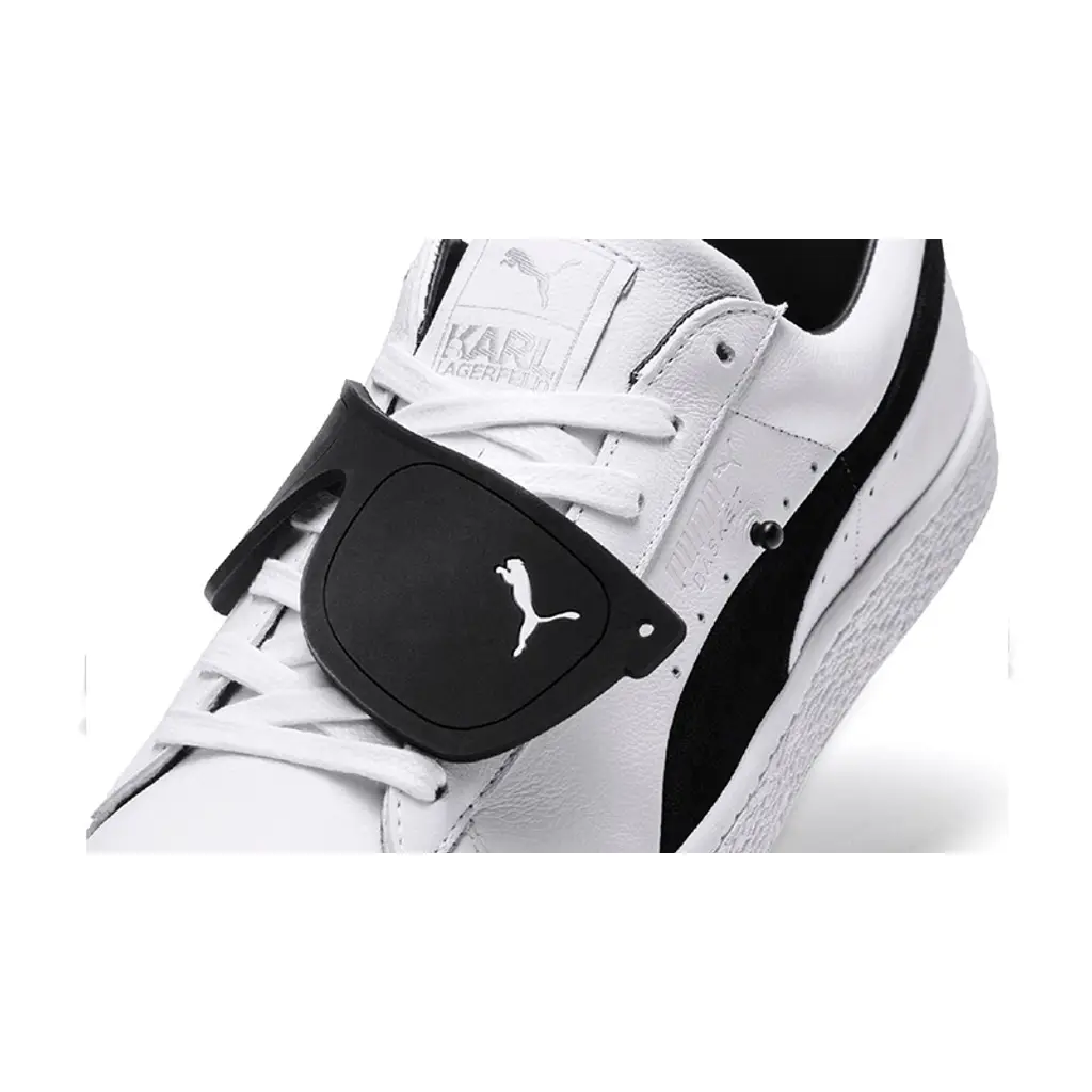 Crafted with a premium leather upper painted in a sleek monochrome colour palette, the Puma Suede Classic x KARL White is a classic with a twist. The stand out feature on this pair is of course the removable sunglasses embellishment which stretches across the upper to pay homage to Lagerfeld’s iconic accessory.