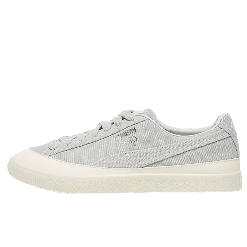 Hard-wearing canvas features across the upper in a light shade of grey. All the iconic details make an appearance from the PUMA stripe to the sidewall to the metallic coated ‘Clyde’ branding.