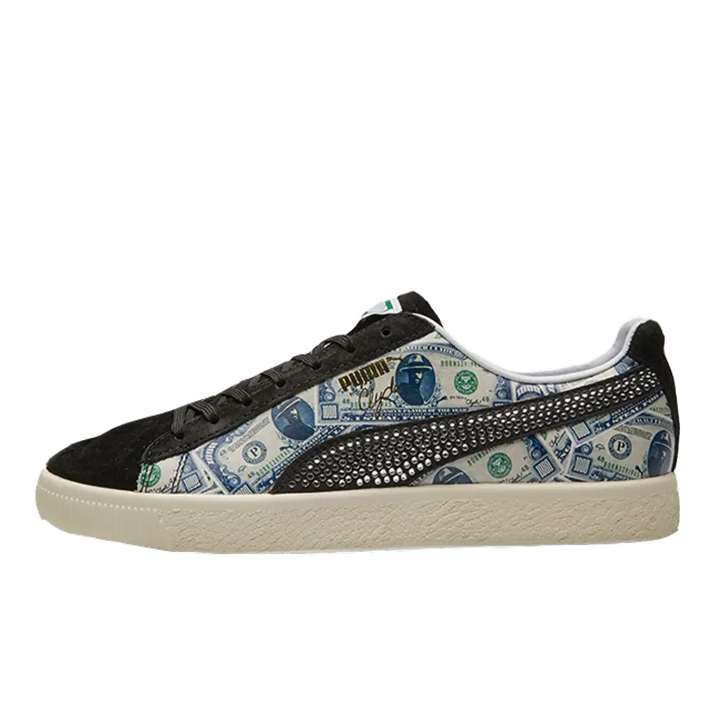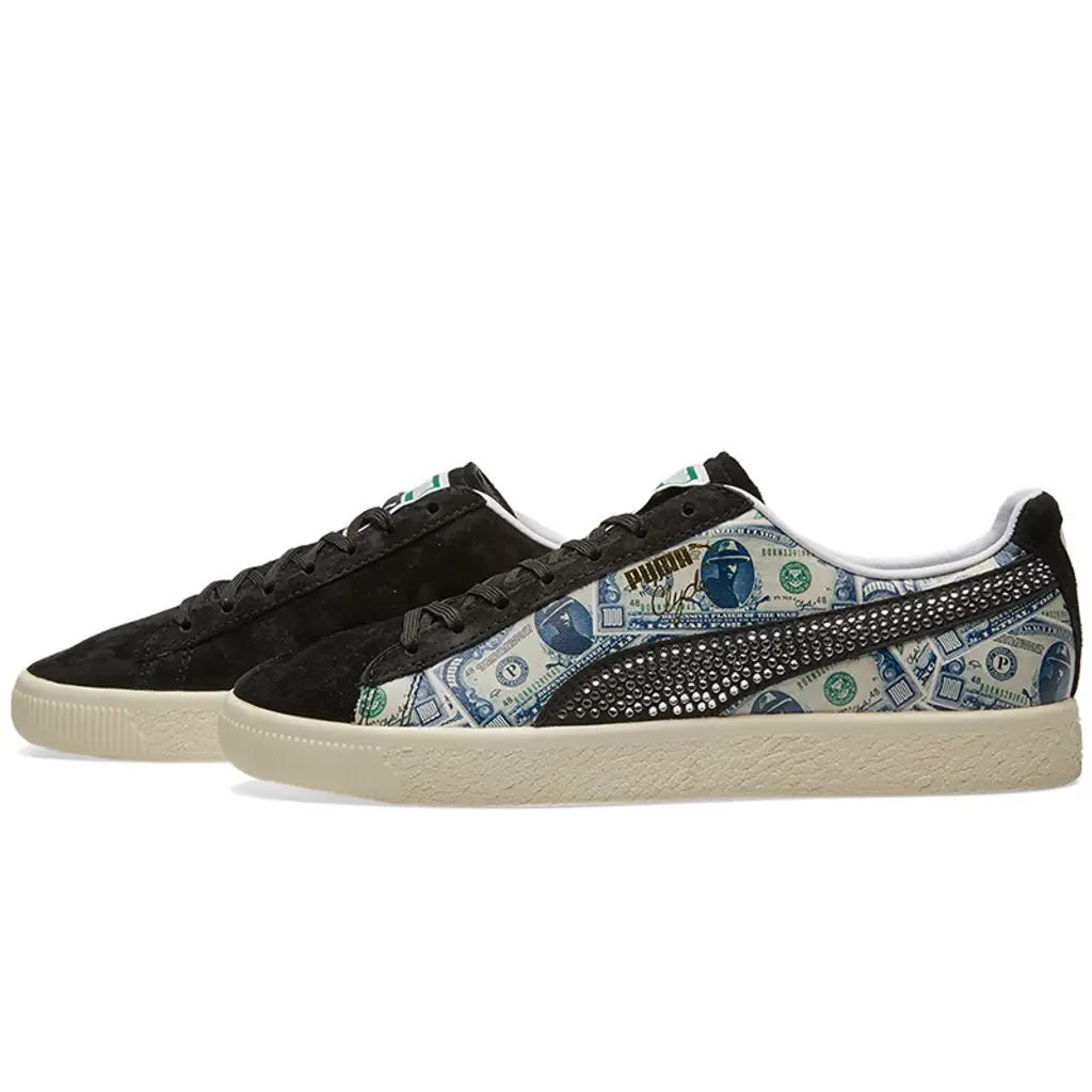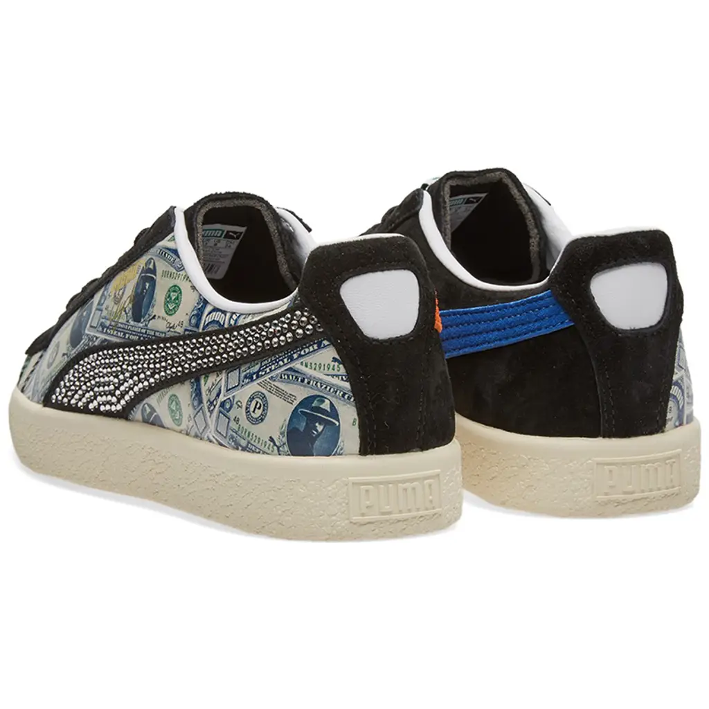The full money motif is complimented by a jewelled PUMA stripe as well as a bright orange stripe to the inner wall. This is a subtle nod to the New York Knicks, home to Frazier for almost a decade during the 90s.