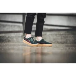 The shoe is crafted from a soft and luxurious suede upper which is dressed in dark green. To compliment this dark colour, bordeaux is used on the side stripe which works wonderfully.