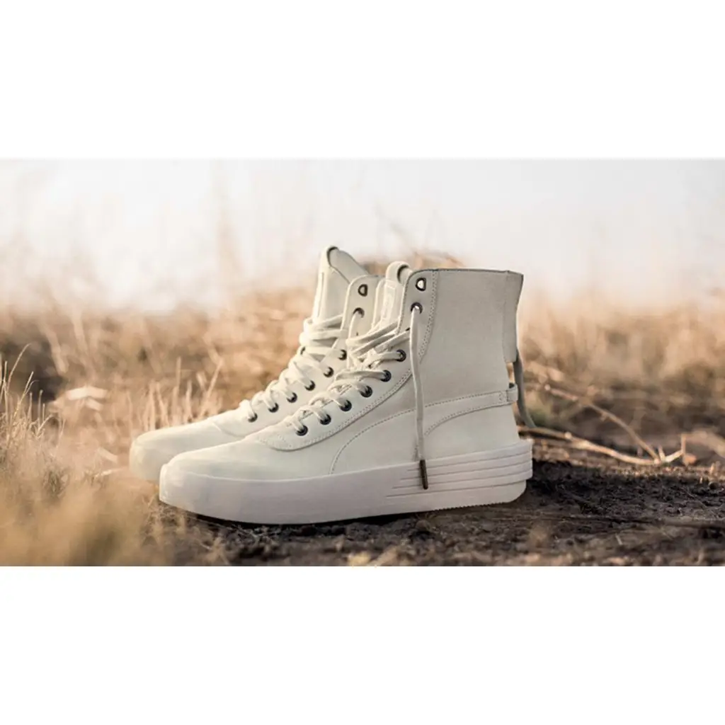 The cutting-edge silhouette sits on a chunky midsole in the same colourway which is found across the upper. A set of laces weaves across much of the shoe in the same style as a military boot. This keeps the foot locked in place and makes it a versatile addition to your autumn and winter wardrobe.
