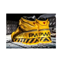A chunky ankle surround continues the theme, giving the look of a hydraulic cable. This homage to the cargo suit is finished off with oversized ‘PW’ branding at the rear.
