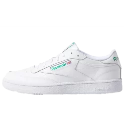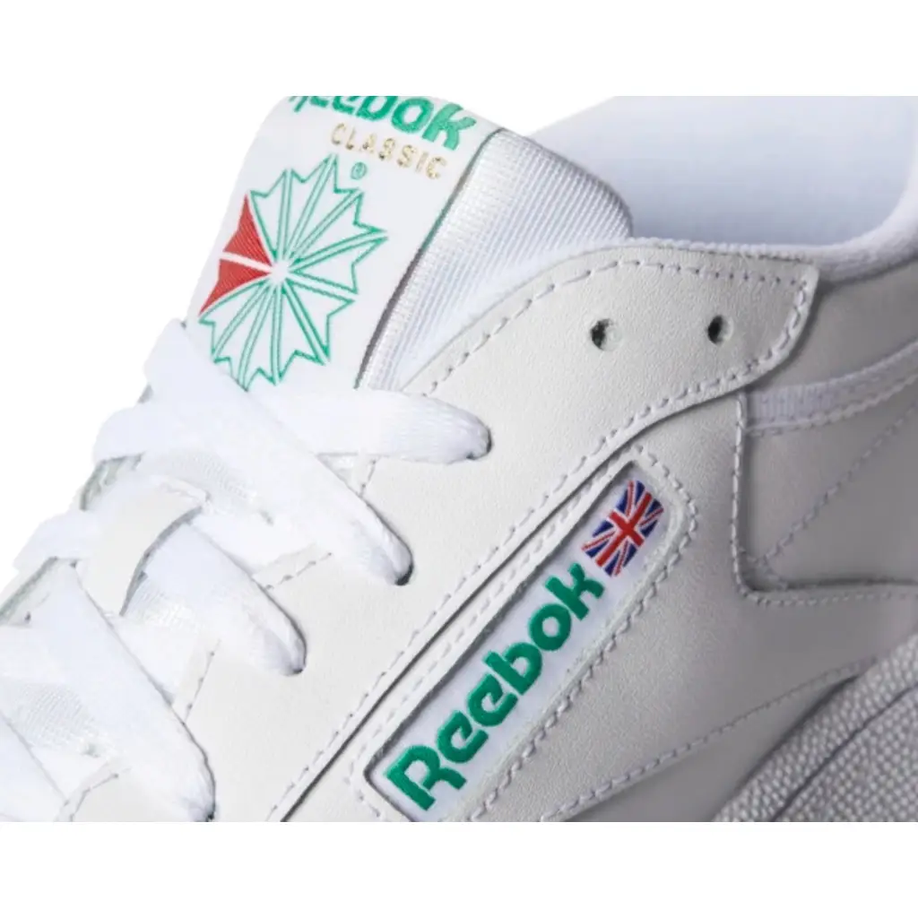 Complemented with a two tone colourway through the sneaker of green and white, this vintage feel Club C 85 shows off Reebok branding to the sidewall, alongside their classic Union Jack motif, with further branding on the tongue and heel in matching colours.