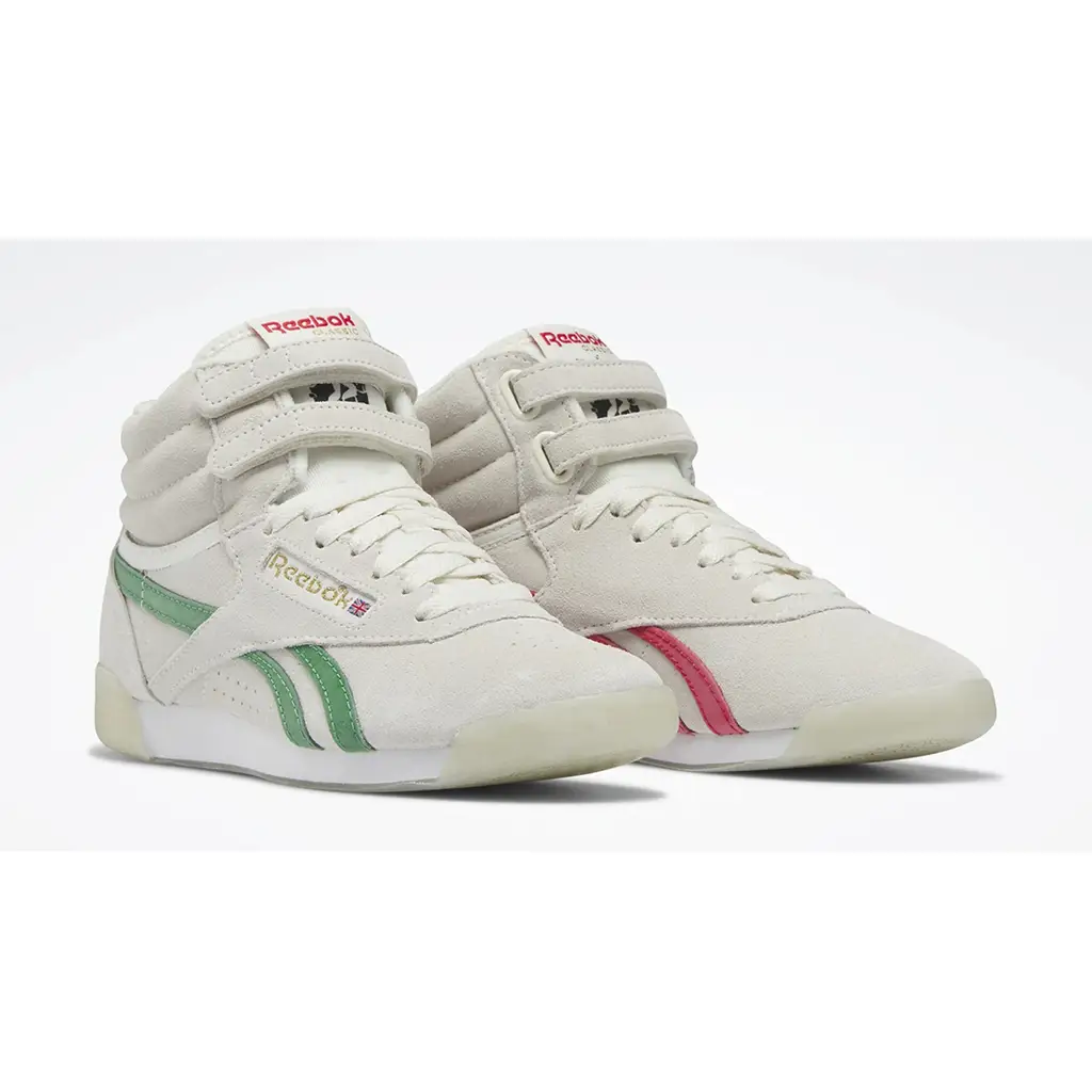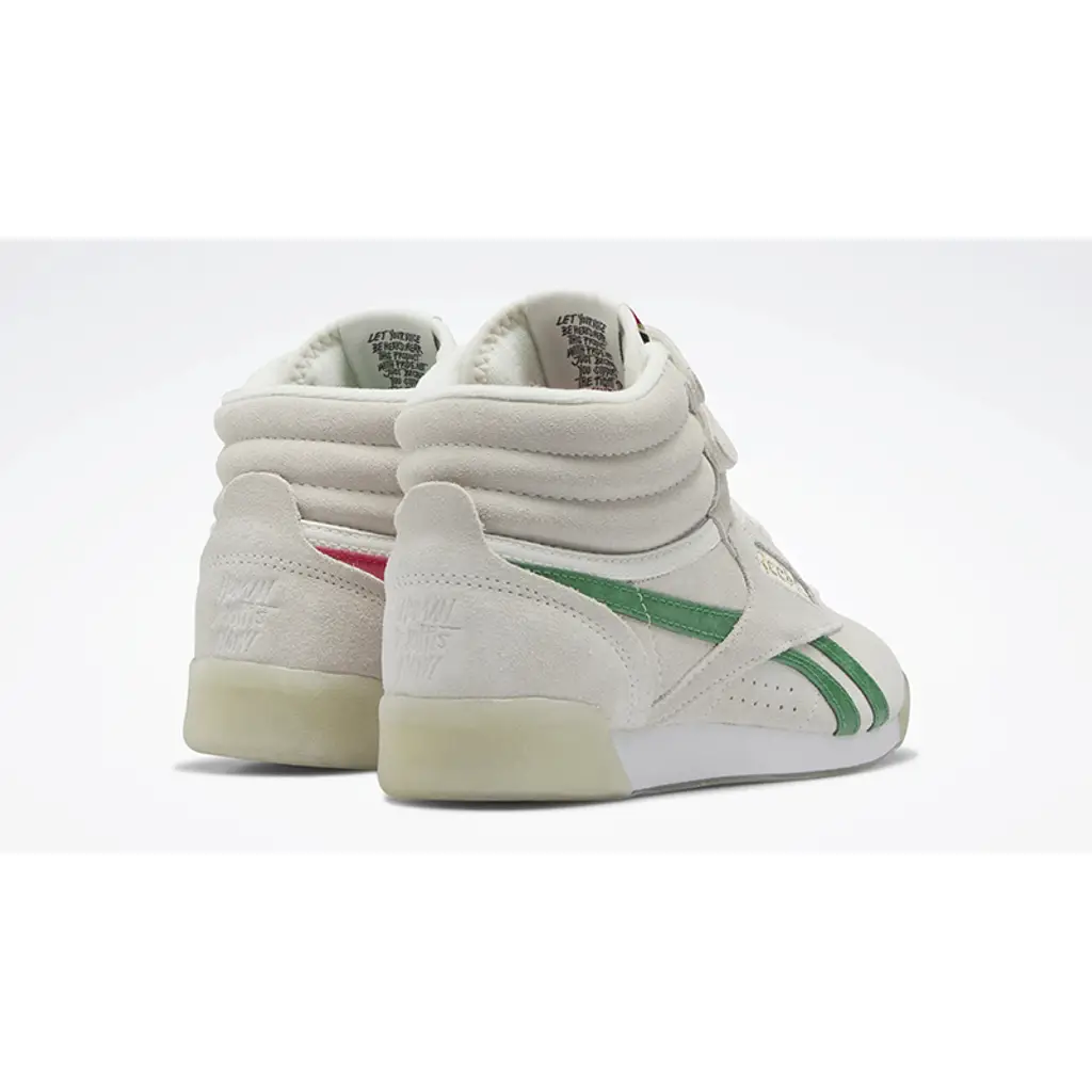 The Reebok F/S Hi Human Rights Now! White delivers a nostalgic retro style and an empowering message. This piece retains the OG design that’s well-loved for 40 years and counting. The vintage-inspired off-white suede upper goes well with the iconic double-strap closure and the puffy quilted collar. Meanwhile, the green (on the lateral side) and red (on the medial side) Reebok logos add colour to the shoe’s neutral look. An EVA midsole and cosy textile lining ensure comfort wherever you go. Finally, this Reebok F/S Hi is branded with a Human Rights Now! Logo at the tongue to bring awareness. The Human Rights Now! manifesto is also on the tongue’s backside and reads, “Let your voice be heard, wear this product with pride. Not just because you support the fight for human rights, but because you have those rights.”