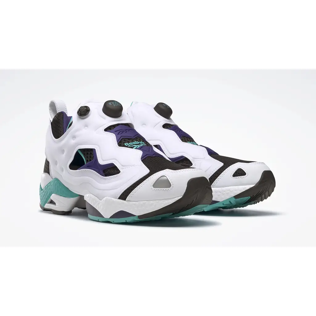 A release that will surely get you “pumped”! Meet the Reebok Instapump Fury Black Teal Purple. One of the more elegant iterations of the sportswear brand’s famous laceless sneaker silhouette, this piece prominently utilises the classic combination of black and white.