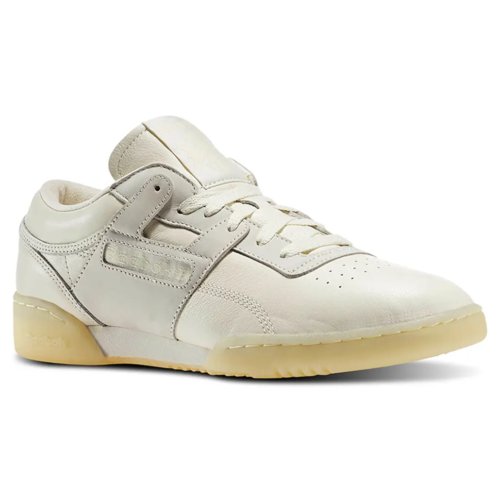The vintage look of the Reebok Workout looks especially good with a full monochromatic upper. This muted shade of cream covers everything in sight from the inner lining to laces and lace surround. As always, the pairs gets hit with vintage details on the tongue and perforated holes are stamped to the toe region.