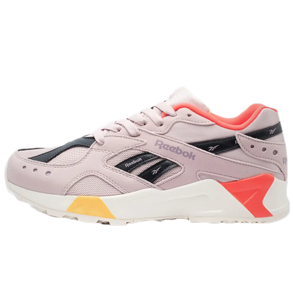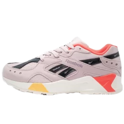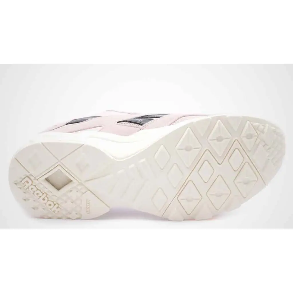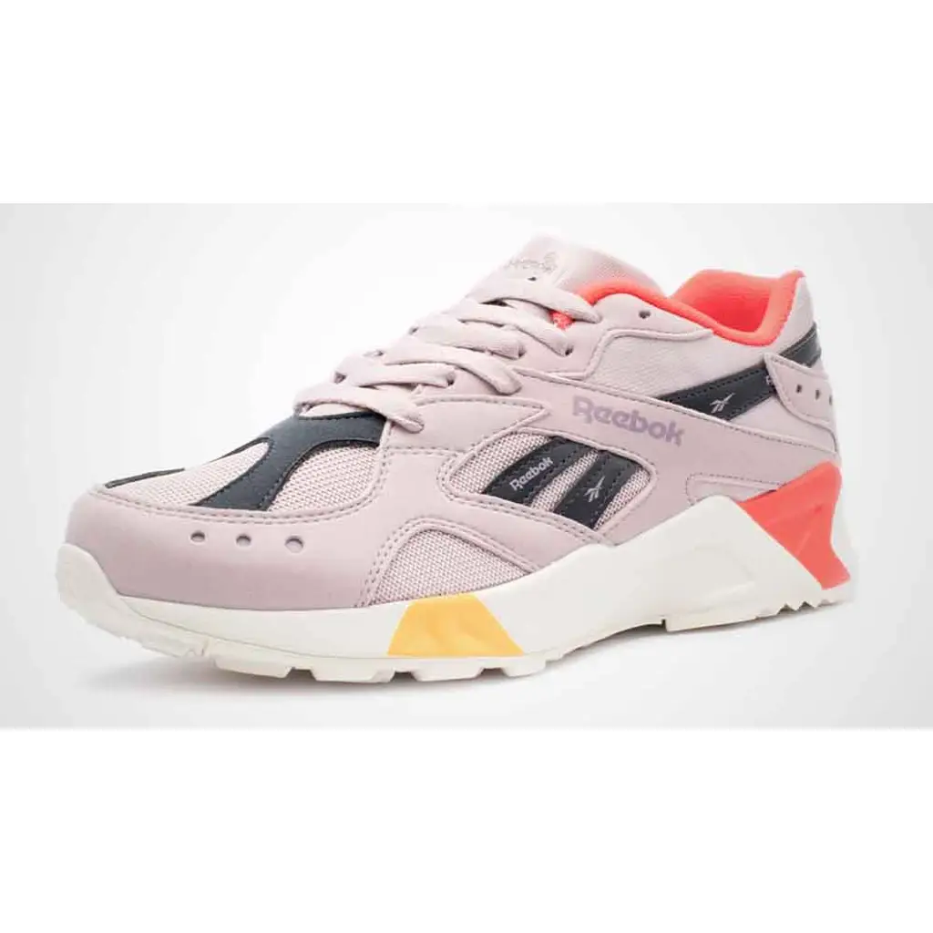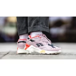 The sneaker is complete with a chunky white midsole that uses Reebok’s Hexalite shock-dissipating cushioning for a smooth ride. Flashes of yellow and red on the midsole contrast with the soft lilac colour above, adding to that retro feel.