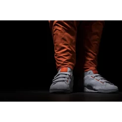 It places all the emphasis on good quality materials and keeps the design laidback yet refined. That’s complimented by the vibrant hits of orange which feature to the embroidered tongue tab and suede heel overlay. There’s a subtle nod to the collaboration as marked on the logo to the tongue.