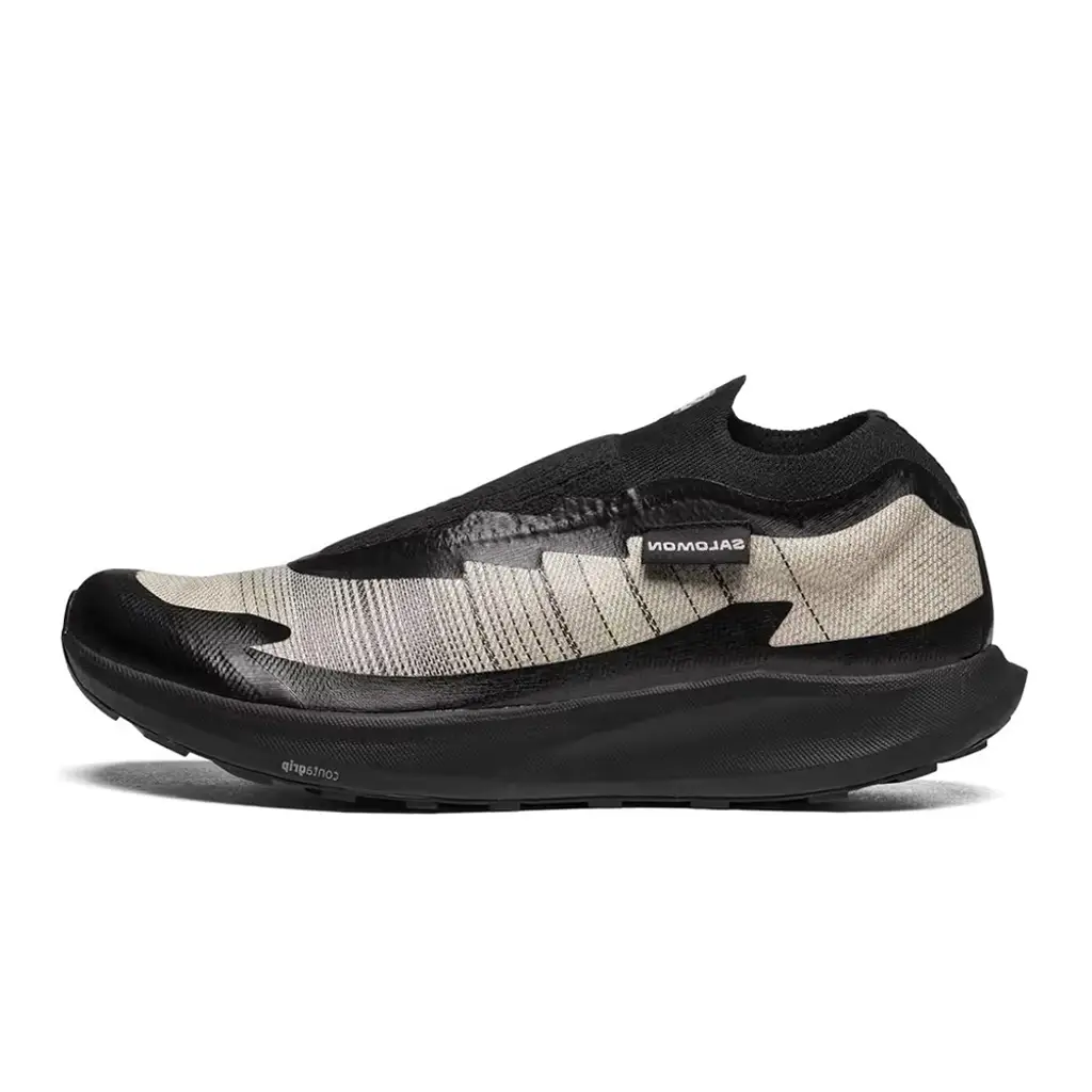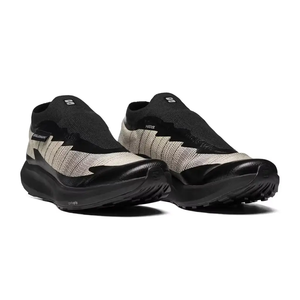 Built for hot summer days and nights, the Salomon Pulsar Advanced is a lightweight laceless sneaker with a durable sock-like upper. Salomon’s patented Matryx® yarn combined with natural linen comprises the main upper construction. Strategically-placed protective overlays on the toe and midfoot area keep the structure solid. This Salomon Pulsar Advanced “Black Pewter” arrives with a beige upper with black reinforcements all around it. 100% recycled linen fibres make up the tongue and vamp layers.