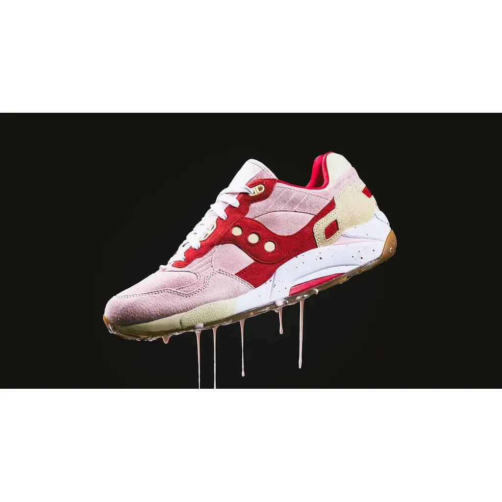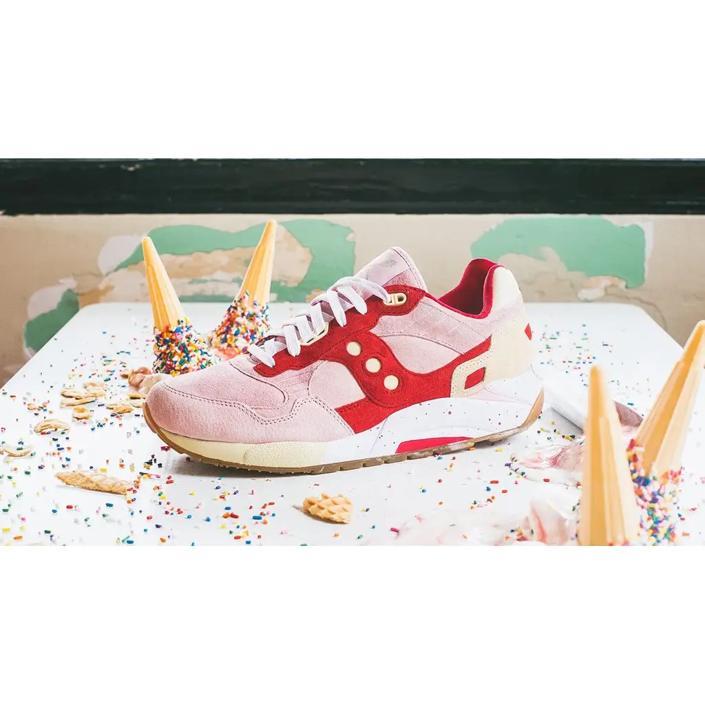 As the name suggests, this edition is inspired by the delicious “Vanilla Strawberry” flavored ice-cream. The pair is highlighted in a mix of Pink, Red and Cream based colourway. It is crafted with premium suede and the shoe has a pink based upper with cream and red hints. It includes a strawberry speckled midsole unit and has branding on the back heel and insole with a custom spoon logo on the tongue. It is finished off with a gum rubber outsole unit which resembles the cone of an ice cream.