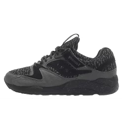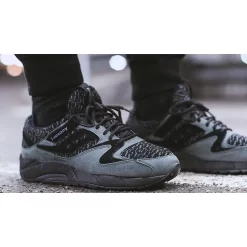 To compliment the deep shade of black across the upper, a chunky black midsole gets hit with speckled detailing. It’s the perfect contrast to this unassuming and laid-back silhouette.