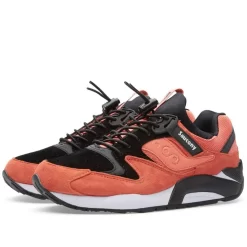 This edition of the Grid 9000 is highlighted in a coral inspired colourway. It is crafted from traditional materials and mesh is utilized for the base while suede overlays reinforce the overall composition. The coral tone consists as its main hue, while there is contrasting black accents across the eyelets, tongue, toe box and rear region. These awesome shoes also includes bungee cord style laces for a unique look and a lace lock, which adds more security. A white midsole and a dark outsole completes the look.