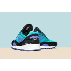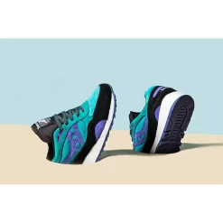 The shoe originally debuted in 1991 and is well known for its engineered heel stability, cushioning and forefoot flexibility. This edition features a turquoise upper comprised of perforated suede and there are light purple and black hints on the shoes signature branding as well as on the mudguard. The shoe sits on top of a clean white midsole and is finished off with a pastel purple outsole.