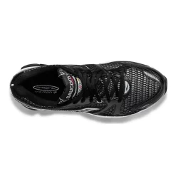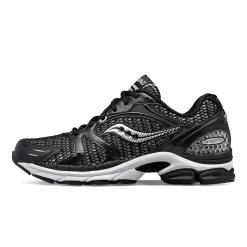 This “Black” colourway opts to dress the techy runner in a binary colour scheme, drawing more focus on the individual details and features. The semi-translucent heel casing is one of the ProGrid’s stability features, using holes to ditch any unnecessary weight. The other component can be found underfoot, where the mid portion uses a plastic composite to give the sole enough of a rigid feel. On the inside of the upper, Saucony’s ARCH-LOCK system prevents your foot from over-pronating and provides solid arch support. Branding on the tongue boasts Saucony’s spell-out logo in white, with a holographic finish on the Triumph 4 titling below.