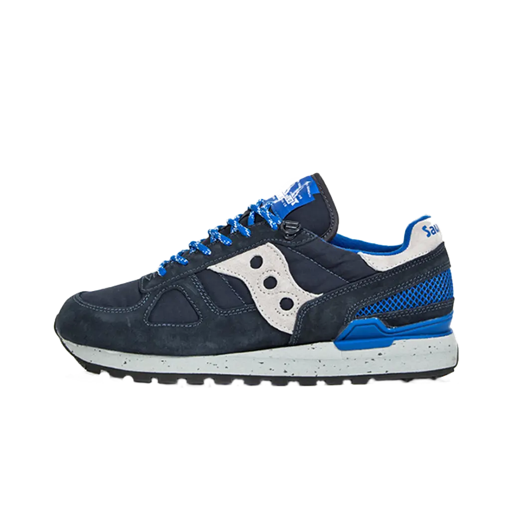 This pair of Saucony Shadow Original is designed in a Navy and grey inspired colourway. Its built with 60/40 Cotton Nylon and suede for a long lasting upper. It also includes an updated padded collar and tongue which provides extra comfort. There is speckled polyurethene mid-sole for additional support and durability. The shoe is finished with a grey out-sole unit.