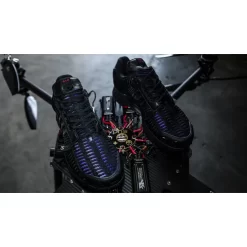 Shoe Gallery looked to the vibrant city of Miami as inspiration. More specifically the glowing neons of South Beach and colourful bar fronts. This is represented through the black mesh of the Climacool where an Xeno lining sits underneath. As you’ll no doubt be aware this futuristic and trademarked material glows in a kaleidoscope of colours when hit with light. It gives a one of a kind look that gives the appearance of an electronic light shimmering through.