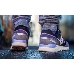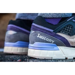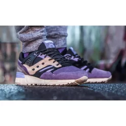 The shoes feature a plush purple suede upper which is complemented by contrasting hints of black. There is also black mesh and amazing leather accents on the sidewalls. The shoe includes custom Sneaker Freaker branding on the tongue while Saucony hits can be seen on the heel area of the shoe. The shoe has eye-catching 3M hits on the heel and the pair are finished off with a white outsole unit.