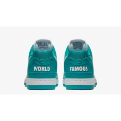 Other unique details includes the addition of ‘World Famous’ lettering which is planted across the heel. It’s another exclusive touch which sets this style apart from the rest. Lighter hits of white compliment that vibrant blue colourway, featuring across the Swoosh, laces and midsole.