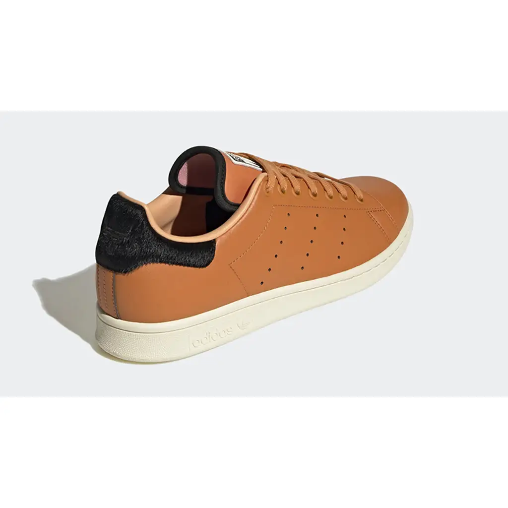 This Stan Smith goes for a natty Oxford-like look with an all-tan-Brown upper with laces in the same colour. The right tongue tab features the classic white adidas Stan Smith logo with Stan Smith’s illustrated face. The left tongue tab swaps out Stan Smith’s face with not Simba but the villain, Scar. The black fur heel tabs are most likely an homage to Scar’s black mane. The insoles show off the PRIMEGREEN logo signifying that this shoe does not use virgin (or newly created) plastic. A vintage-looking cream sole unit finishes off the style of these kicks.