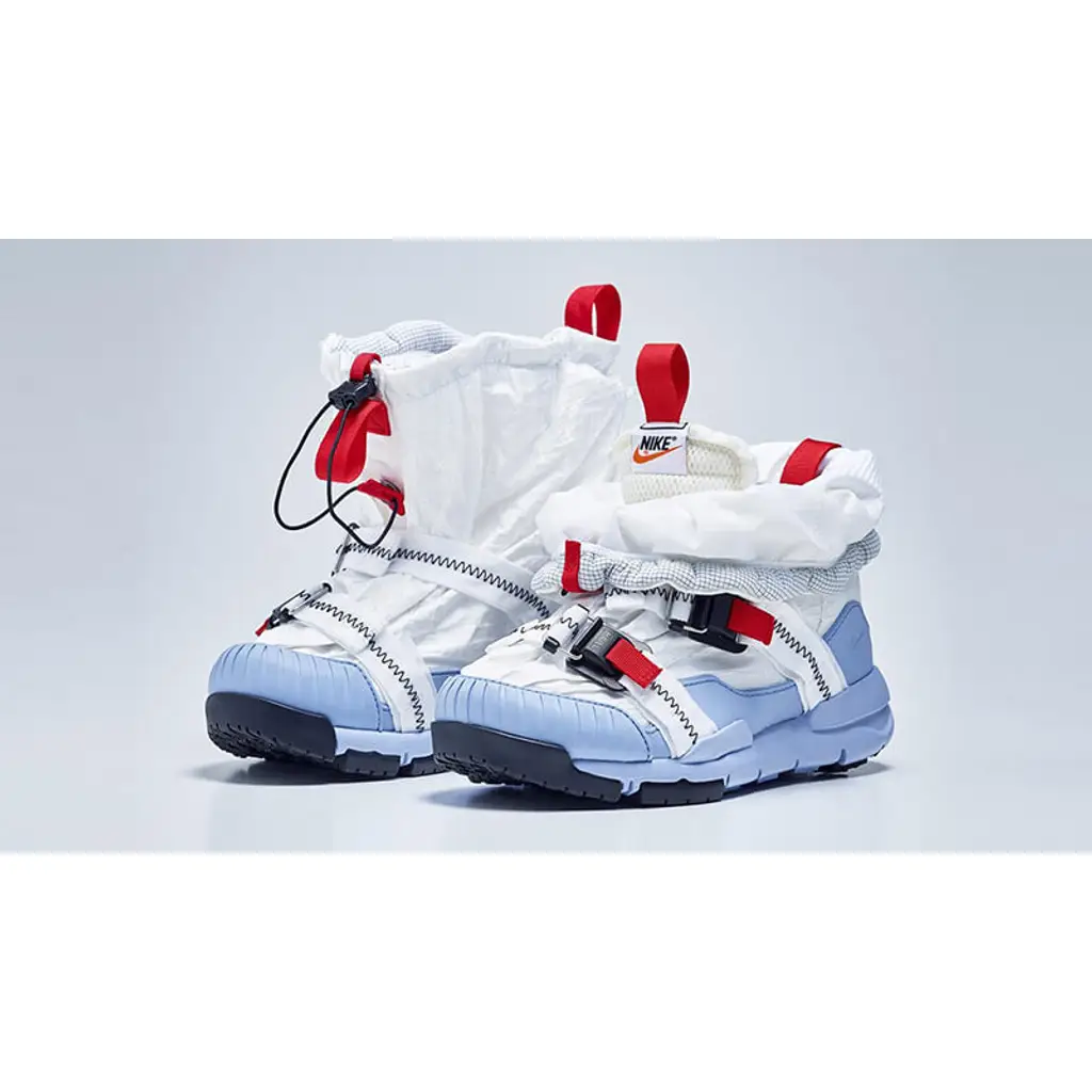 Eleven years in the making, the Tom Sachs x Nike Mars Yard Overshoe features a moon boot like look, with a clean white and blue colour palette that’s sure to turn heads this season. If you didn’t already know, a pair of Mars Yard 2.0 sneakers into the inner layer, and it’s covered by a waterproof Dyneema material for extra warmth. A cord lock features around this for air tightness, and bold red magnetic buckles surround the vamp for the ultimate lock down fit.