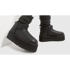 UGG’s ankle boot version of its Classic Boot with a leg-lengthening sole, the Classic Ultra Mini Platform, has an all-black iteration that will go with most of your outfits. Meet the UGG Classic Ultra Mini Platform Leather Boots Black.
