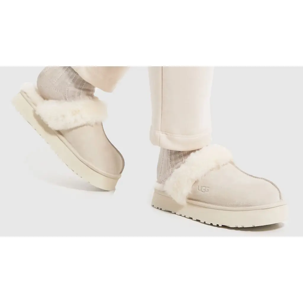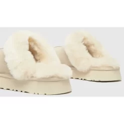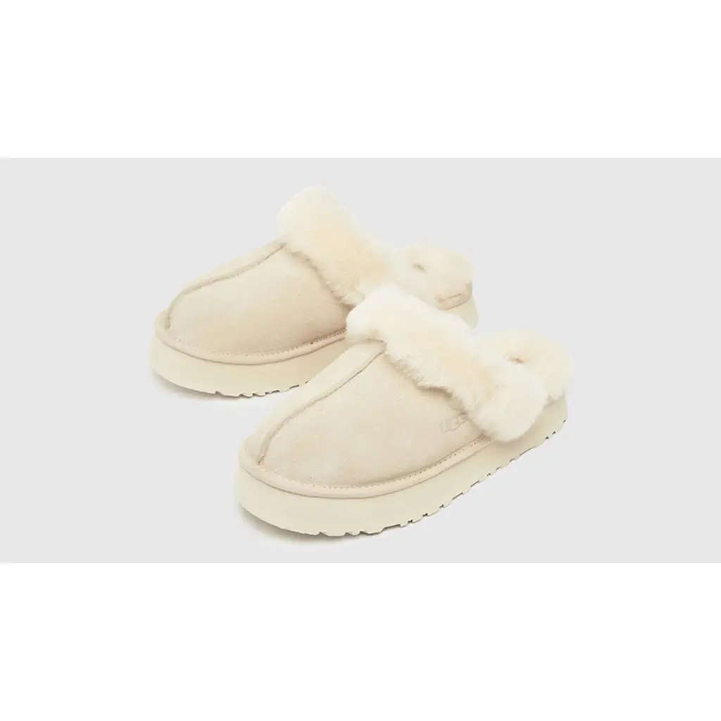 UGG’s hybrid of its Coquette and Disco styles, the Disquette Slipper, has a new colourway in an uber-wearable beige tone. Check out the UGG Disquette Slipper Stone.