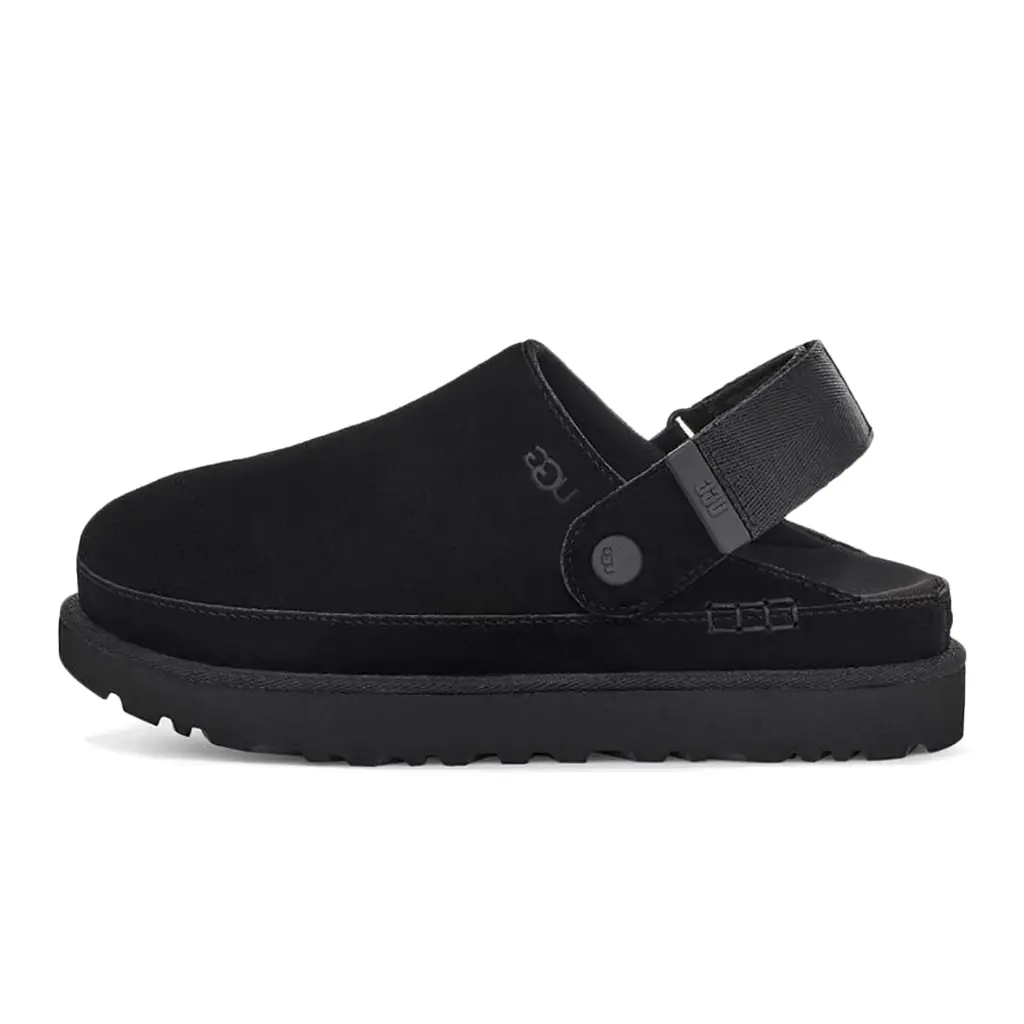 UGG’s versatile, wear-with-anything slip-ons, the Goldenstar Clog, has an all-black version that will complement your minimalist casual outfits. Meet the UGG Goldenstar Clog Black.