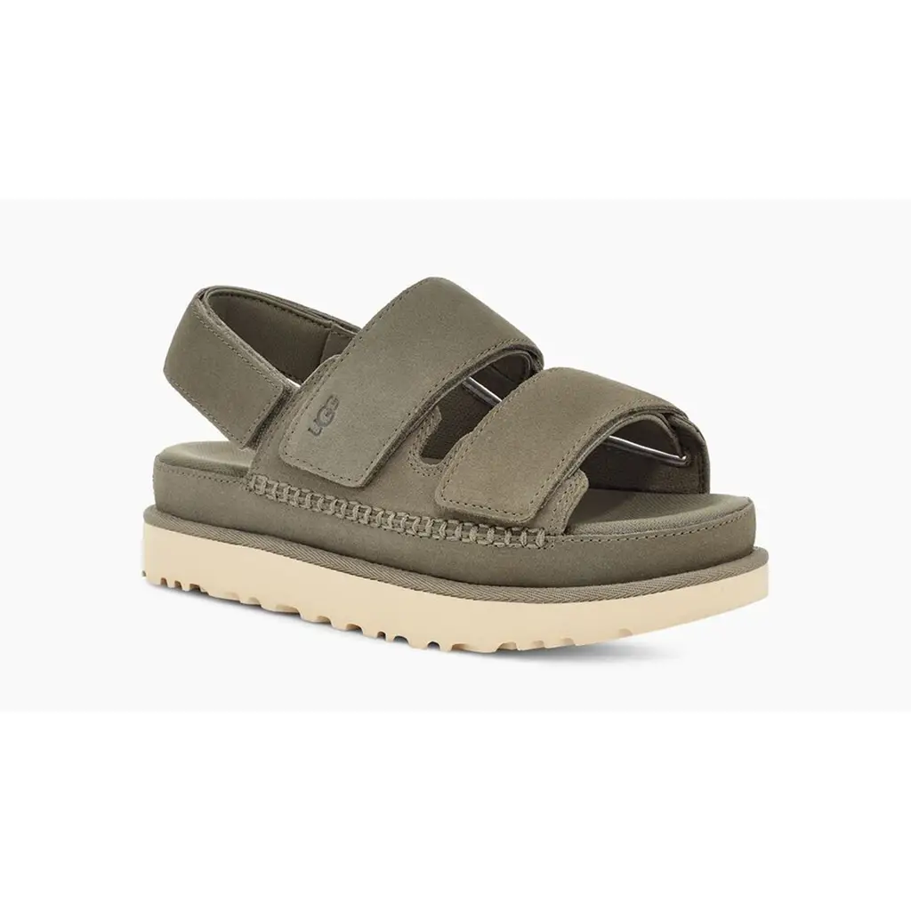 UGG’s summer-ready and minimalist platform sandal, the Goldenstar Slingback Sandal, has an updated variant in muted green. Meet the UGG Goldenstar Slingback Sandal “Moss Green”.