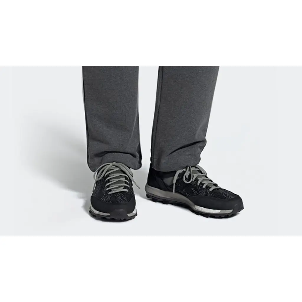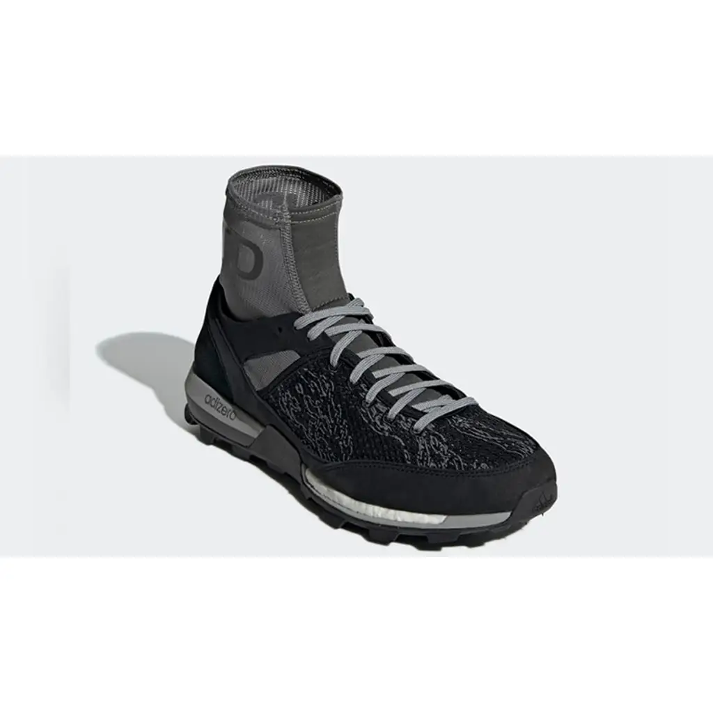 Painted in an extremely versatile black and grey colour scheme, the Undefeated x adidas Adizero XT Black flawlessly fuses cutting edge technologies with the raw attitude of street culture. Combining the durability and traction of rugged trail shoes with the light and fast ride of marathon shoes, arch support and an agile design deliver a flexible, adaptable ride on uneven terrain and road. A high ankle cuff helps keep out pebbles and mud. Down below, responsive Boost cushioning and a rugged Continental outsole deliver additional comfort and a smoother stride.