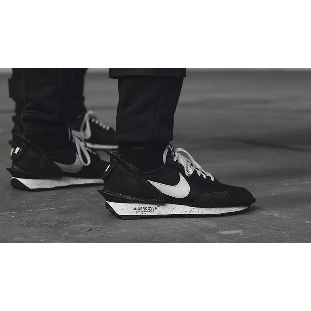 As stealthy as it gets, the Undercover x Nike Daybreak Black is painted in a monochromatic black and white palette. The upper is crafted from a durable waterproof material to tackle the elements, and this is flanked by buttery smooth suede mudguards.