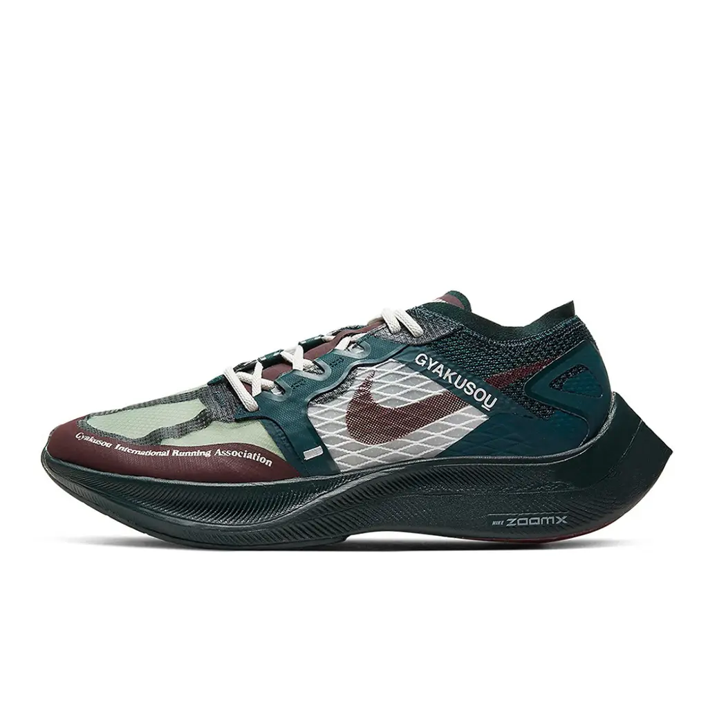 When you combine two street-style icons, the resulting shoe is nothing short of magnificent. And that’s precisely what the Undercover x Nike Gyakusou ZoomX VaporFly Next% 2 Green Burgundy sneaker is. Whether you actually run or not, the breathable material of the Next% 2 paired with Nike’s ZoomX‘s cushioned sole births a featherlight sneaker that’s ready for any activity.