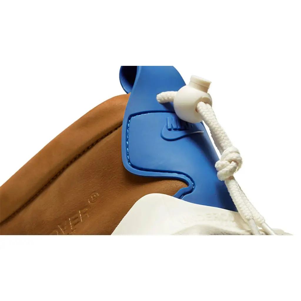This Moc Flow has a luxe leather upper in tan-looking Ale Brown. Undercover and Jun Takahashi text branding is stylishly embossed on the lateral side of the shoe. The TPU heel tab at the rear which also functions as a pull tab with ecru lace toggles is in a striking Team Royal blue shade. The perforated Team Royal TPU lateral mid-panel accent also follows suit. White co-branding can be found on the Ale Brown insoles. The beige sole unit with grey spatters on the midsole and icy semi-translucent patches on the cratered outsole completes the style of this slip-on.