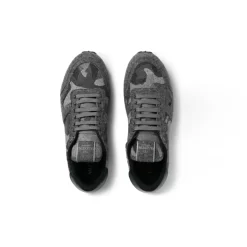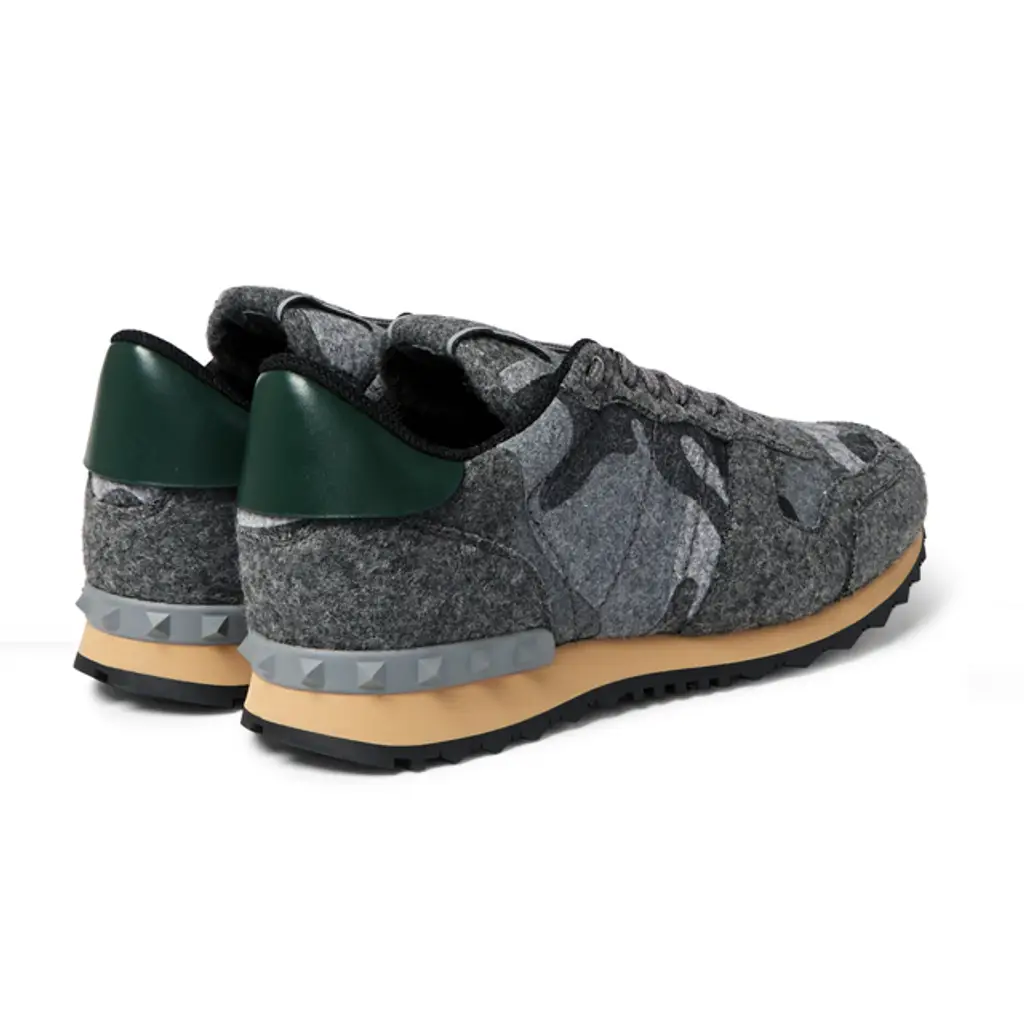 The camo pattern across the upper takes on a grey-scale colour theme which is complimented by tonal wool overlays. The only addition of colour comes from a vibrant green patch to the rear which manages to balance an otherwise monochromatic look.