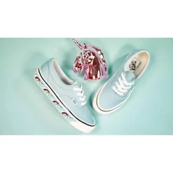 The classic skate shoe has been given a modern, spring-ready twist, with pastel blue and animated unicorns to boot. Arriving in a Cyan/Light Blue colourway, the silhouette is crafted from a durable canvas upper, which brings support, and the classic Vans look.