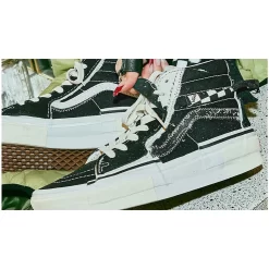 Vans’ skateboarding silhouette that’s as cutting-edge in style as it was in 1978, the SK8-Hi Reconstruct, has an updated back-to-basics colourway. Take a closer look at the Vans SK8-Hi Reconstruct “Black White”.