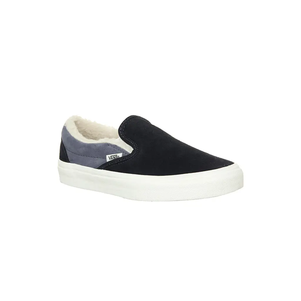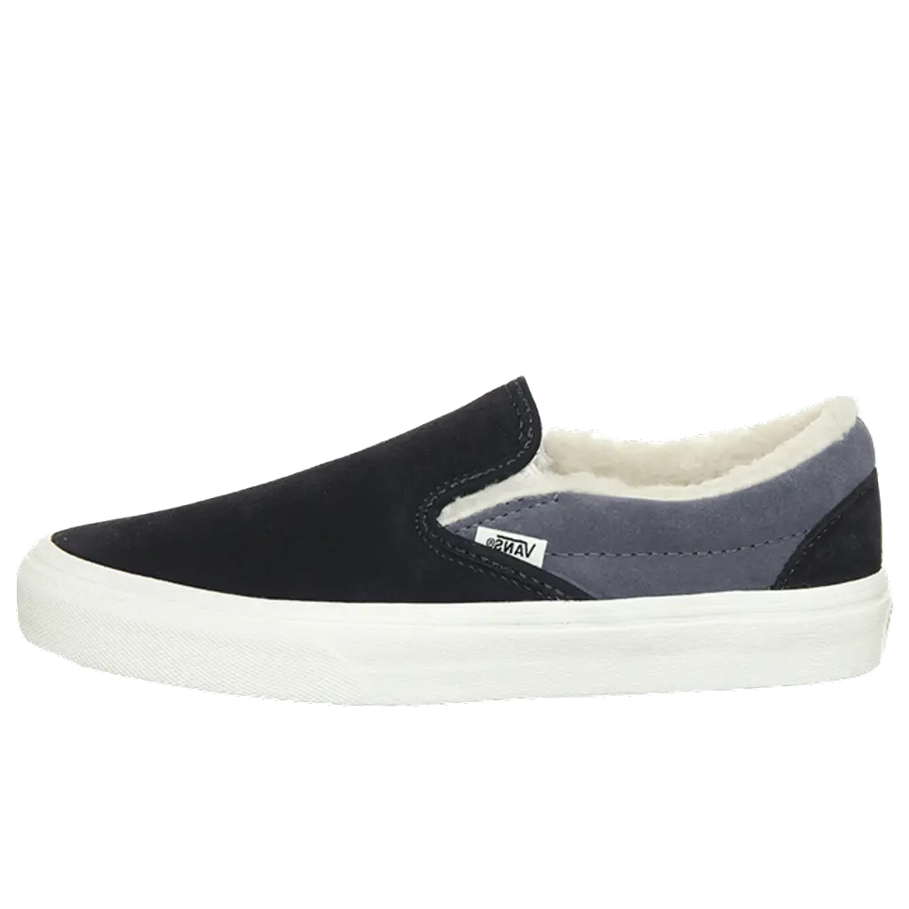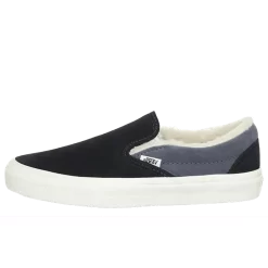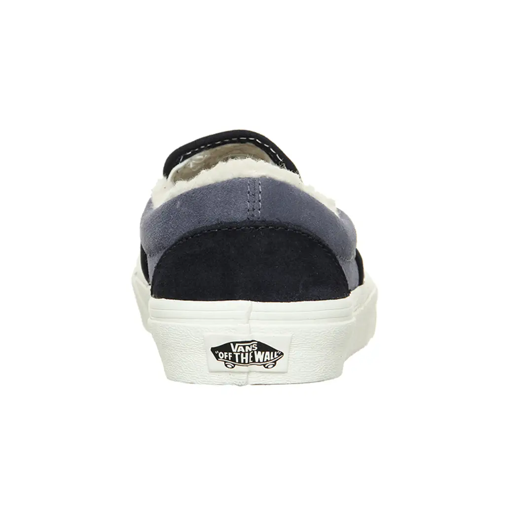 Arriving in a black, blue and white colourway, the silhouette is dressed with a suede upper and layered panel aesthetic. The classic Vans Slip On style is prominent, making this a timeless silhouette with a warm twist.